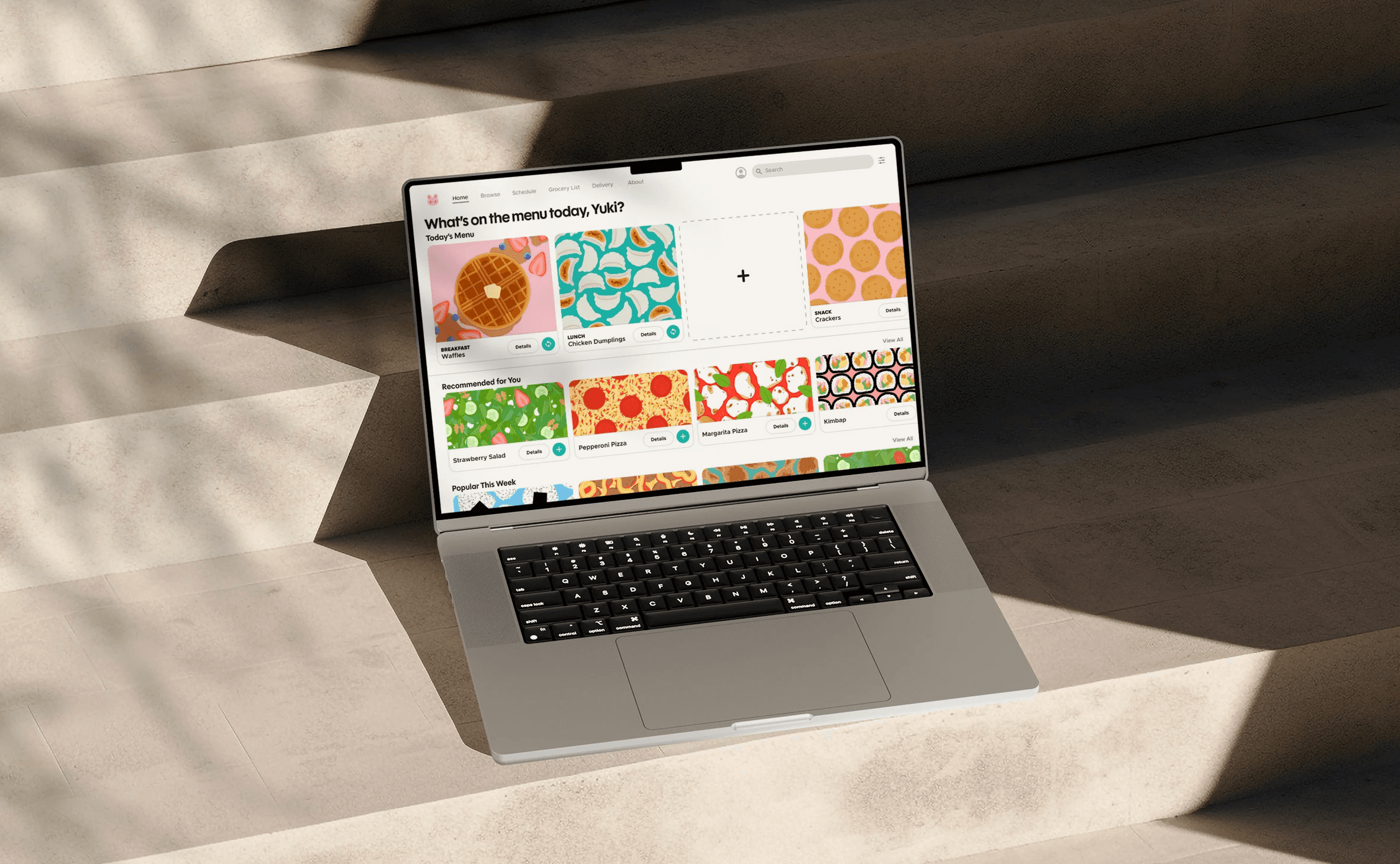 The primary challenge was to design a system that simplifies meal planning while remaining intuitive and flexible for a wide range of users. The experience needed to reduce cognitive load, support efficient decision-making, and encourage more intentional purchasing habits. Another key consideration was designing clear flows that allow users to purchase only the ingredients required for planned meals, helping reduce food waste while increasing convenience through delivery integration.