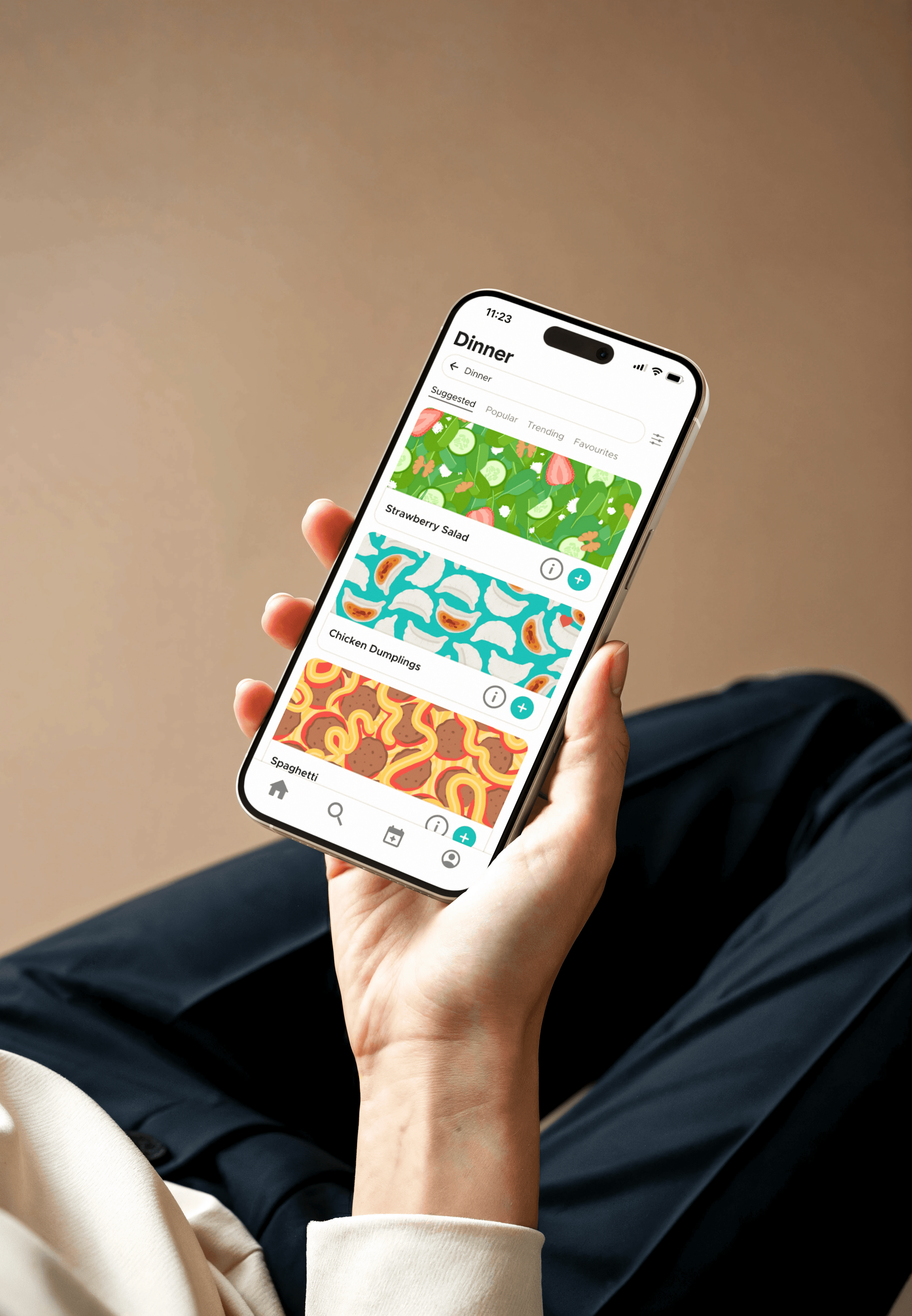 The app brings meal planning, ingredient management, and grocery ordering into one simple flow, reducing friction and decision fatigue. Each step is designed to feel lightweight and easy to complete.
